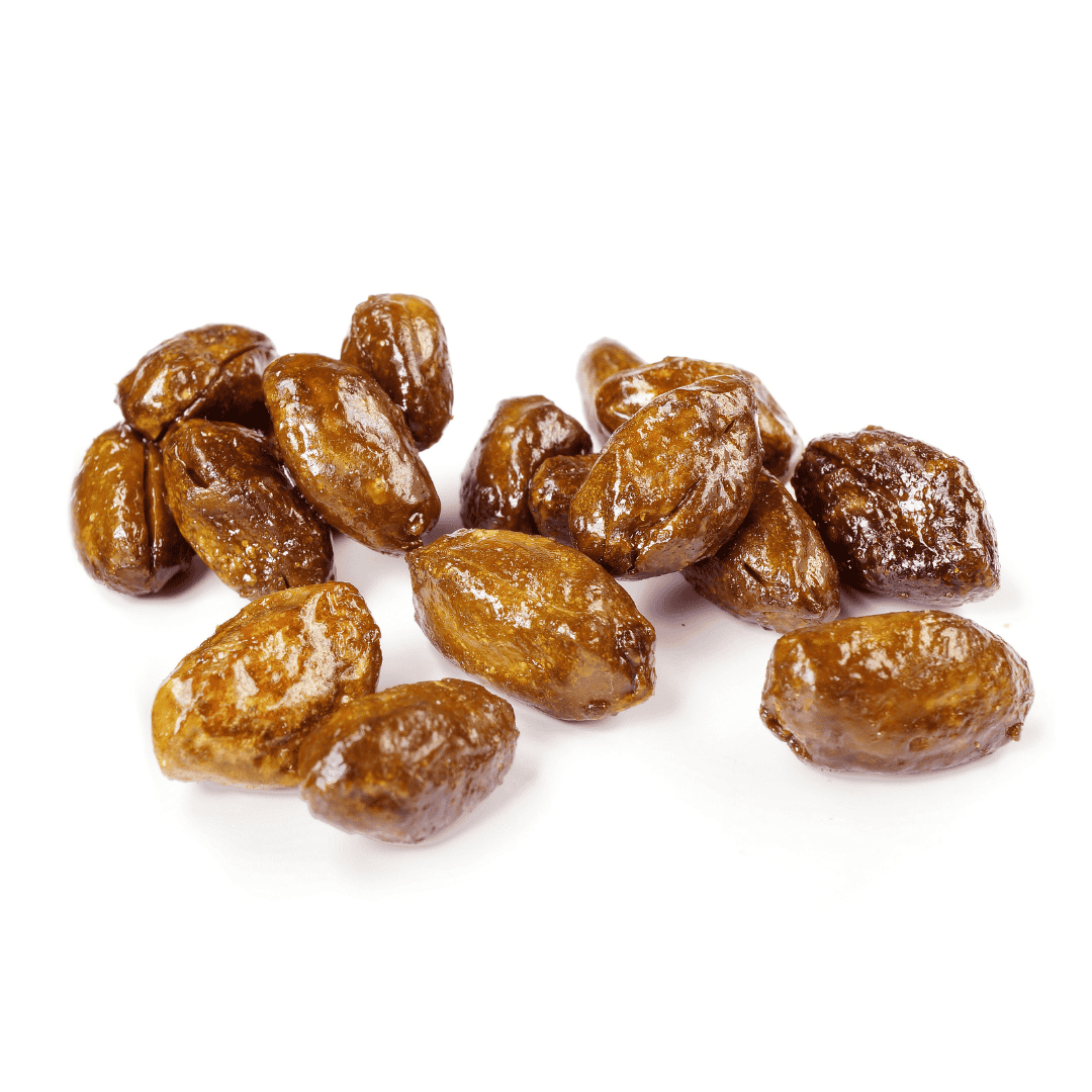 Utilitzem pistatxos sencers i pelats, acuradament seleccionats per assegurar la màxima qualitat en cada peça. Després d’una immersió de 24 hores en almívar i una fritura controlada en oli d’oliva, l’excés de sucre s’elimina i el resultat és un pistatxo cruixent, resistent a la humitat i estèticament impecable.