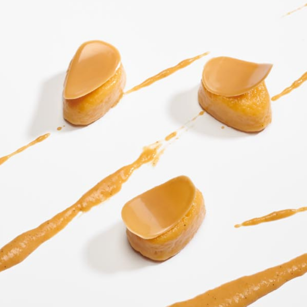 In this case, apricot brings balanced acidity, natural sweetness and aromatic intensity, transforming each piece into a concentrated fruit bite. The result is a versatile sweet gnocchi, ideal for plated desserts, tasting menus or compositions where fruit needs structure without losing freshness.