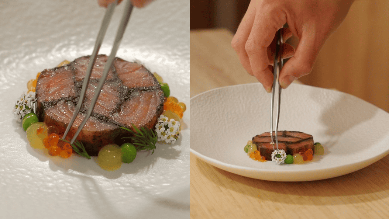 In this proposal, aesthetics and technical precision come together thanks to the use of the mosaic technique. This method consists of arranging small solid elements (such as vegetables, meats or fruits) in an orderly (such as vegetables, meats or fruits) to form a visually harmonious, almost pictorial structure. It is a technique that requires precision in cutting, chromatic balance and a deep knowledge of the ingredients, both in taste and texture.