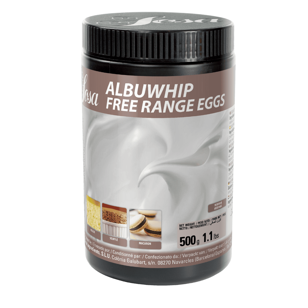L’albumine (Albuwhip) permet d’isoler la fraction protéique responsable de l’enrobage et de l’aération, en éliminant l’excès d’eau et les variations inhérentes aux œufs frais. Cela se traduit par une plus grande capacité à incorporer de l’air, des structures plus stables et une régularité indispensable dans le contexte de la haute cuisine. De plus, comme il s’agit d’un produit sec et contrôlé, il facilite la répétabilité de la recette et une gestion plus précise du processus.