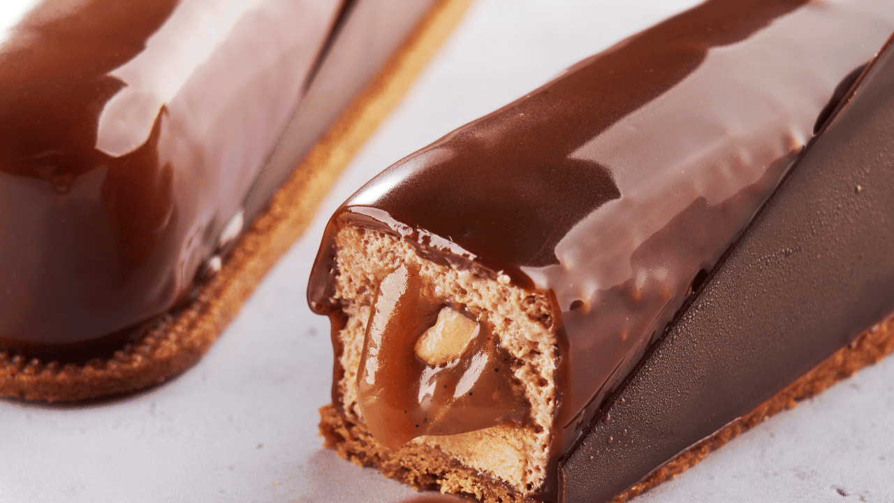 El resultado final es una barra delicadamente suave, que se funde en boca liberando todas las notas del chocolate, el caramelo y los frutos secos. Una creación pensada para los chefs que buscan precisión técnica y excelencia estética en cada detalle.