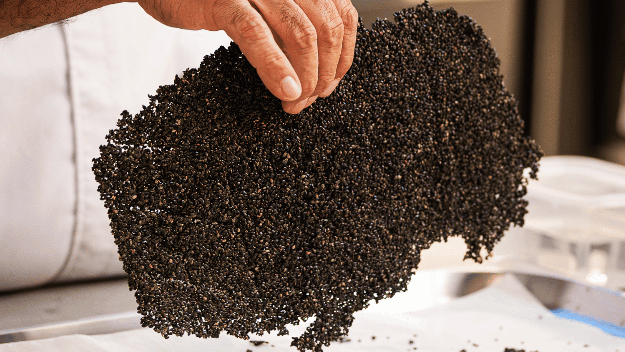 Para conseguir ese acabado fino y quebradizo, utilizamos Maltosec, un producto versátil que actúa como encolante natural. Gracias a su capacidad de aportar cohesión sin alterar el sabor, permite obtener una lámina crujiente, ligera y estable, que realza la presencia del sésamo en su máxima expresión.