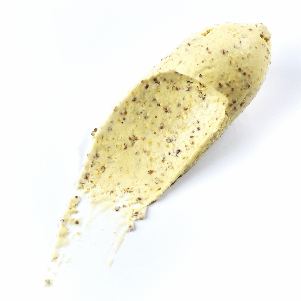 La base de leche y crema aporta riqueza y equilibrio, mientras que la mostaza, seleccionada por su perfil aromático y su intensidad, se integra perfectamente en la mezcla, ofreciendo un sabor sorprendente pero armonioso. El resultado es un helado versátil, ideal para chefs que buscan diferenciar su propuesta y sorprender a sus comensales con combinaciones atrevidas y refinadas.