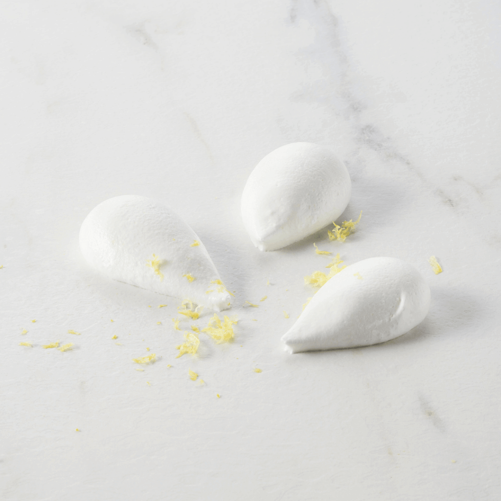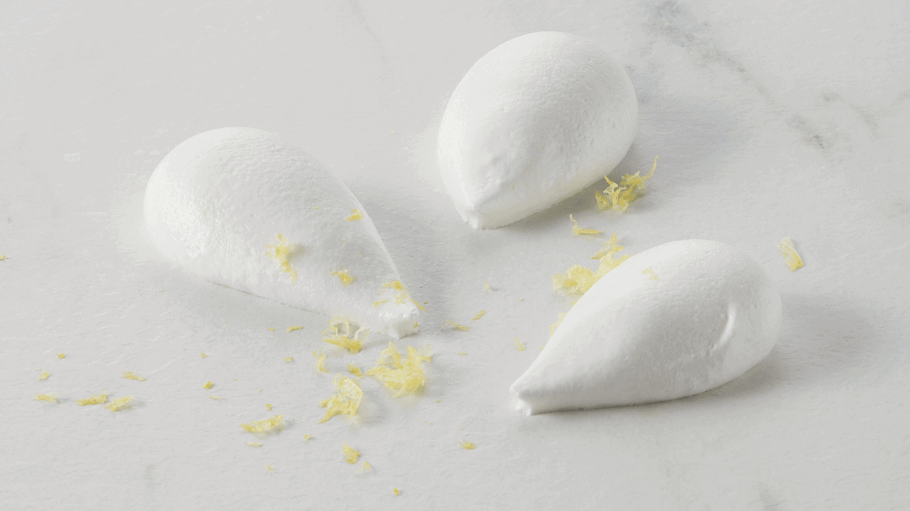 En esta versión, hemos querido reinterpretar esta técnica clásica utilizando Albuwhip, nuestro texturizante especializado que sustituye la clara de huevo. Este ingrediente innovador ofrece una capacidad de montado superior en más del 25% respecto a la clara tradicional, logrando un volumen mayor y una estructura aún más estable. Además, elimina el sabor residual del huevo, permitiendo que los aromas principales —en este caso, el del limón fresco— se expresen con total pureza y equilibrio.